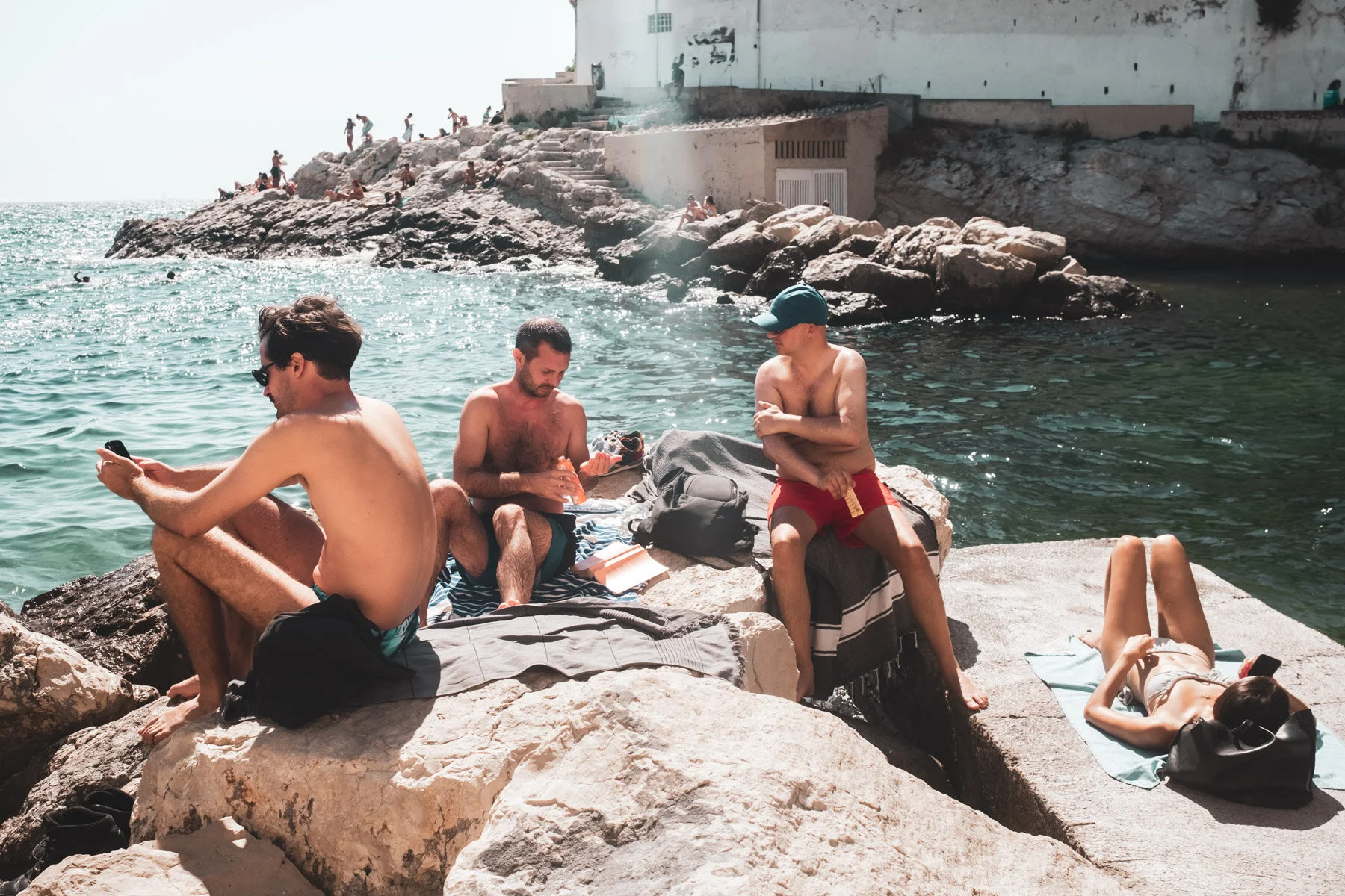 Our place was near Plage des Catalans in the 7th Arrondissement. The beach scene was lively and crowded, which can be fun, but we opted first for a picnic on the rocks, where we could more freely bask and swim.